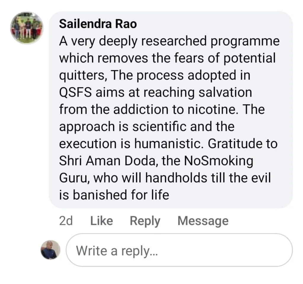 “QSFS is a scientifically structured program that truly transforms lives. It’s not just about quitting smoking — it helps you think clearly, live freely, and build a healthier future. I strongly recommend it to every smoker who wants real change.”